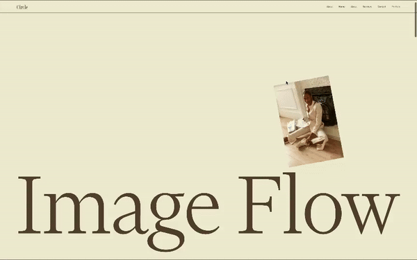 Images spawn at your cursor position, gently float with slight rotation, then gracefully fade away - creating an ethereal, dreamlike effect. The animation uses professional-grade timing for smooth, polished movement. A smart distance check prevents overwhelming the page when moving quickly. Images are pulled from your existing gallery, so updating the visuals is as simple as changing gallery images.